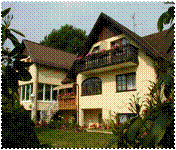 Unser Haus liegt inmitten einer herrlichen sehr ruhigen Landschaft, 50m zum Wald, schöne Spazierwege in ausgedehnten Wäldern. Der stilvolle, gemütlich eingerichtete Aufenthaltsraum und die Komfortzimmer mit DU/WC, SAT-TV, Balkon und Terrasse, bieten eine gemütliche Atmosphäre. Liegewiese, Sonnenterrasse.